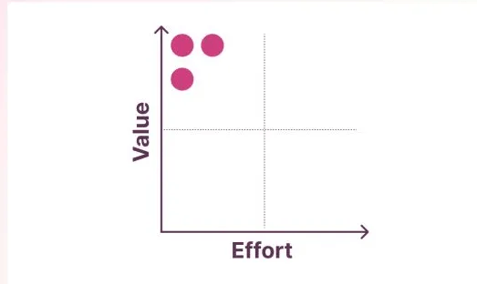 A Matriz de Valor e O conceito de esforço é o reflexo da Priorização Lean. Você deve calcular o valor da resolução de cada ponto problemático com base nos resultados da sua pesquisa e no esforço potencial para construir uma solução para ele e priorizá-los.